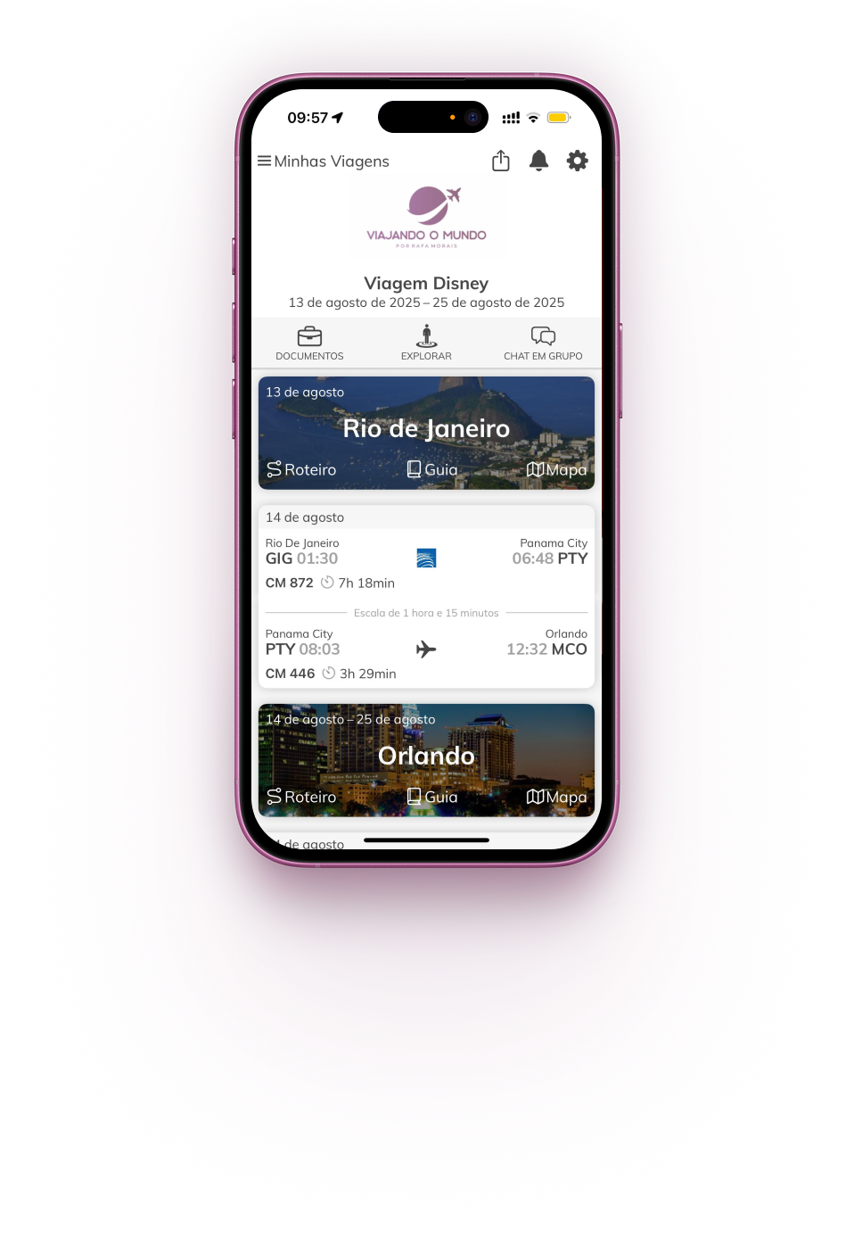Você economiza tempo, evita imprevistos e recebe um roteiro sob medida, com todo o suporte do início ao fim da viagem. Tudo isso organizado em um aplicativo exclusivo, com reservas, roteiros e dicas sempre à mão – até offline.